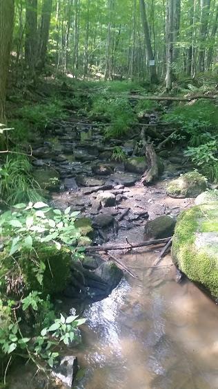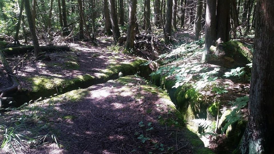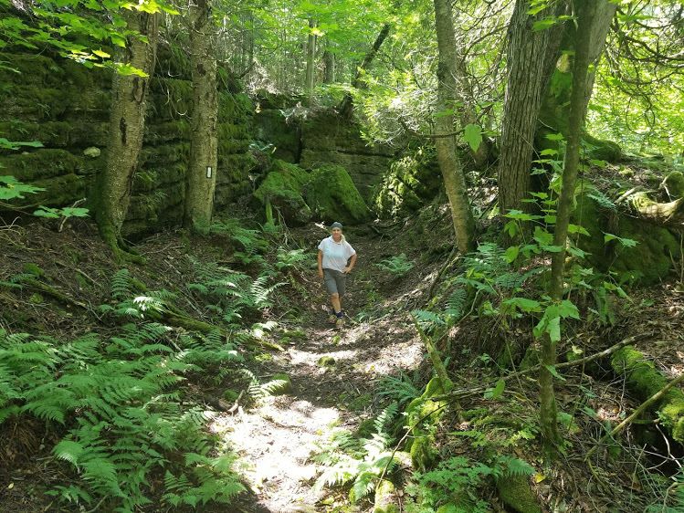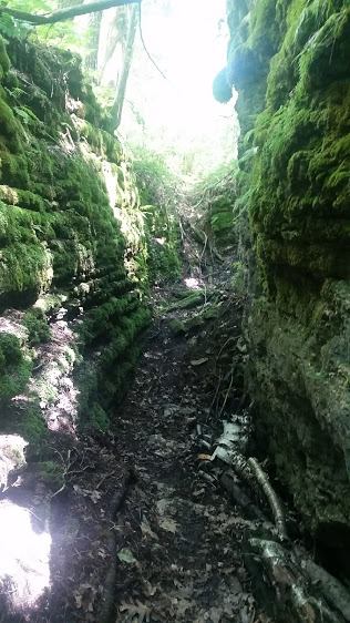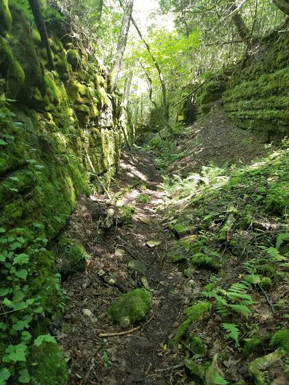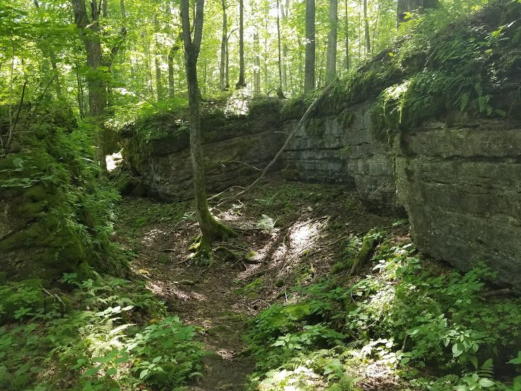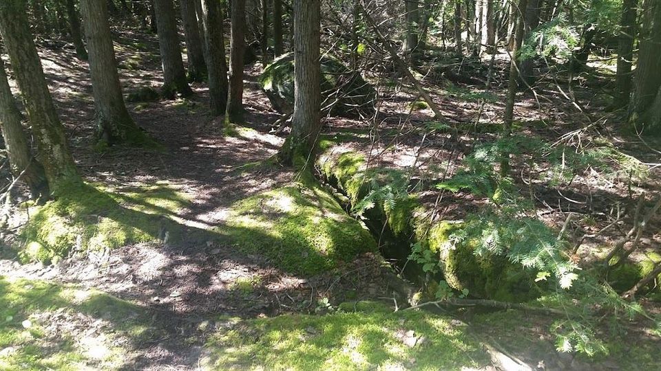 Natural area of varied forests, beaver ponds, marshes, and abandoned pastures; Niagara Escarpment and the Bruce Trail; remnants of an early sawmill from the area’s historically important logging industry; geologically interesting features such as glacial marks on bedrock, ancient shore boulders and walls upon walls of deep ancient crevices that seem to never end. What an incredible hike. Sydenham Bruce Trail Club, Map 33, The Glen
