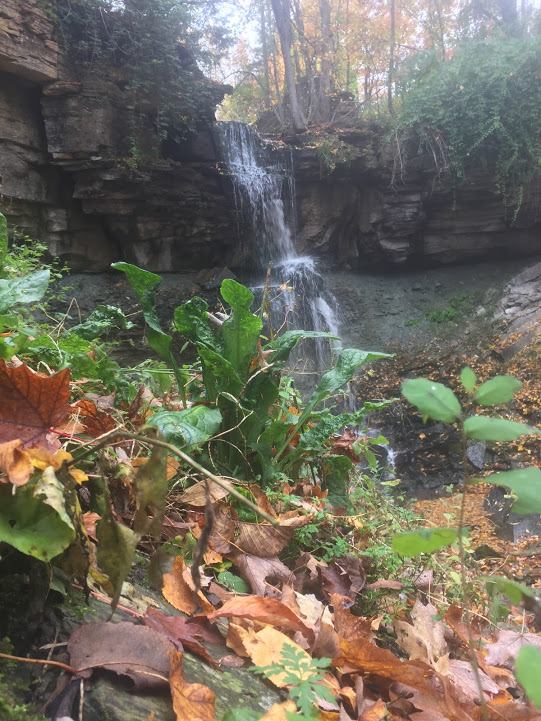 The Webwood Falls Nature Reserve is located north of the Town of Kimberley in the municipality of Grey Highlands. A true cascading waterfall, although not a ‘bridal veil’ falls such as you find at Indian Falls or Hogg’s Falls, it’s much more akin to Walter’s Falls in style. The water flow is definitely not heavy, but energetic none-the-less! Below the falls, the property flows off into a striking ravine, well-covered with a lush growth of plants. the historical significance (it’s formerly a mill which served much of the county), and the remnants of the original garden (are all highlights)The falls are located no more than 100 metres off the nearest side-road, making it one of the most easily reached waterfalls in the county. The stream continues through a deep, forested river valley that cuts through the southern portion of the property. A tranquil place to be. Signing off, “Hiking with the Viking”. Map 28, Beaver Valley Bruce Trail Club
