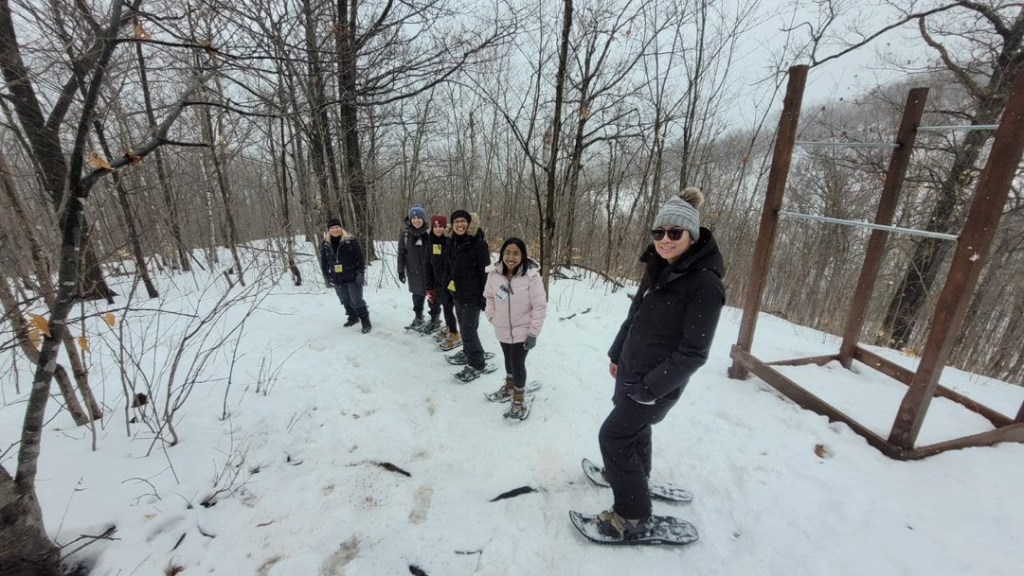 Leading a snowshoe group for Track3 Event at Craigleith Ski Club 2023DUNCAN CREVICE CAVESBOYD CREVICESHike Ontario Hike Leader Certification CourseBoy Scouts Hug-a-Tree & Survive Program Search & RescueShelter Building